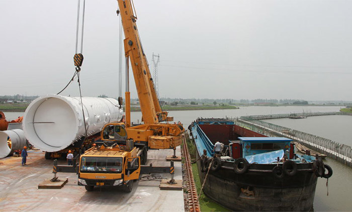 杭氧集團(tuán)在廣西杭氧盛隆投的8萬(wàn)m3/h空分設(shè)備  (國(guó)內(nèi)首套)已于2013年8月投入運(yùn)行,該8萬(wàn)空分設(shè)備的空冷、水冷塔是有美克斯機(jī)械制造,最終使用水路運(yùn)輸?shù)竭_(dá)目的地。